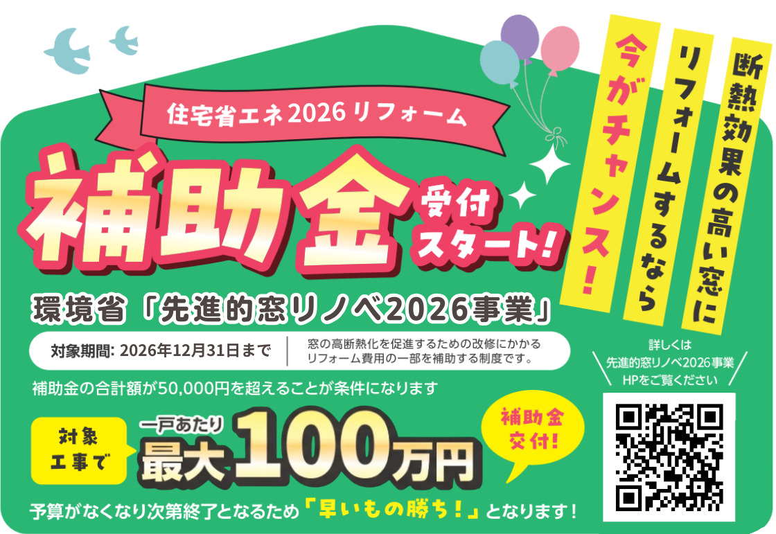 2026年度は補助上限額が100万円となりましたが、今年度から新たに追加された特大サイズの窓(SSグレード)には、過去最高クラスの補助額が設定されました。