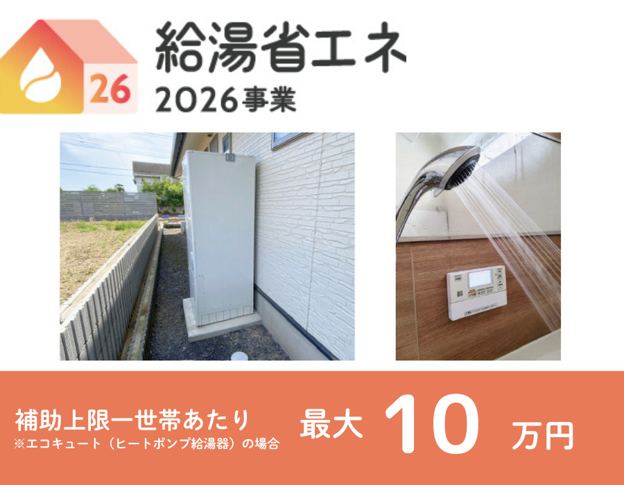 エコキュート(ヒートポンプ給湯機)等の高効率給湯器工事に最大10万円の補助金が交付されます。