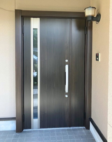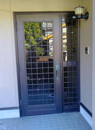 長年使用していた玄関ドアは、色褪せやキズ、錆が目立ち、全体的に古びた印象でした。